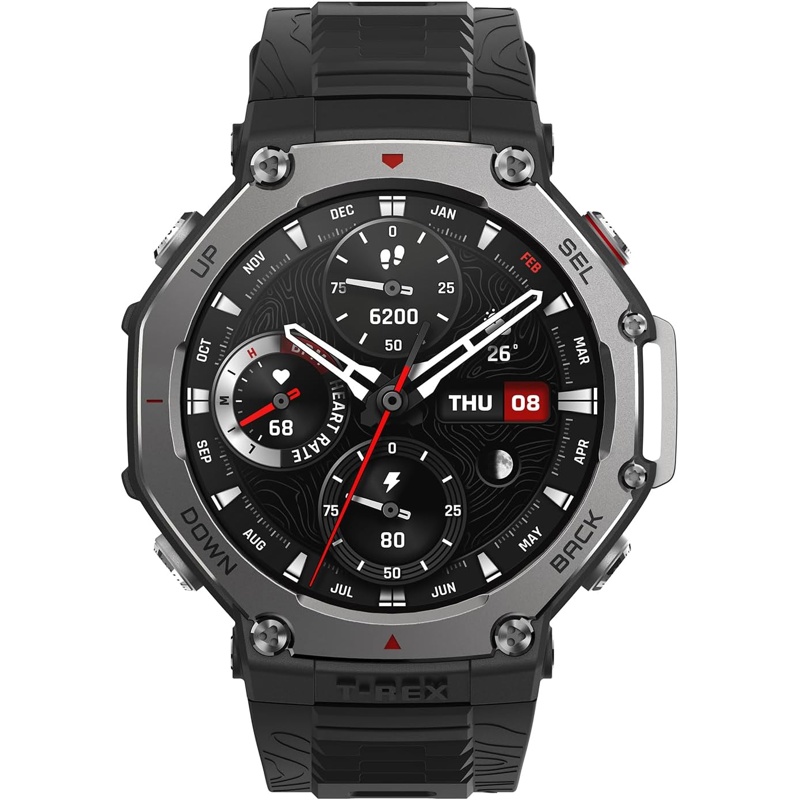 Amazfit T-Rex 3 es un reloj inteligente con una carcasa de polímero y una pantalla AMOLED de 1,5 pulgadas. Cuenta con conectividad Bluetooth y es compatible con dispositivos Android e iOS. El dispositivo incluye un sensor de frecuencia cardíaca y GPS incorporado. Su batería tiene una duración de hasta 18 días en uso estándar. El reloj es resistente al agua hasta 100 metros y soporta diversas condiciones climáticas. Tiene más de 150 modos deportivos, incluyendo correr, nadar y ciclismo. El Amazfit T-Rex 3 permite recibir notificaciones de llamadas, mensajes y aplicaciones. Integra funciones de seguimiento del sueño y monitoreo del estrés. Su diseño incluye botones físicos para la navegación y un sistema operativo propio para la gestión de aplicaciones. Además, incorpora un acelerómetro, un giroscopio y un magnetómetro. Es compatible con diferentes esferas personalizables y permite el almacenamiento de datos de salud a largo plazo en una aplicación complementaria. El tamaño del dispositivo se adapta a diferentes muñecas y el peso total es de aproximadamente 60 gramos.
