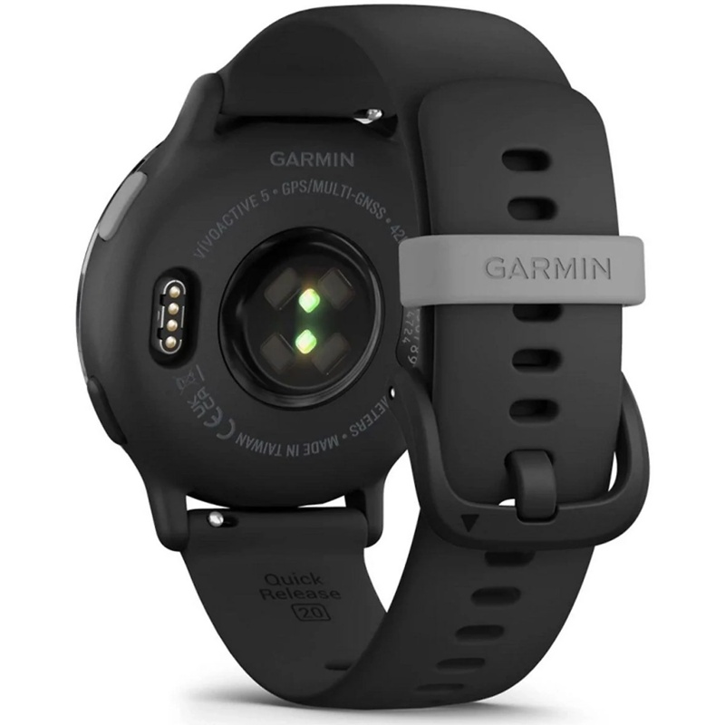 Garmin Vívoactive 5 es un reloj inteligente con pantalla AMOLED de 42 mm y tecnología GPS. Ofrece una duración de batería de hasta 11 días con un uso habitual. Incorpora sensores de frecuencia cardíaca en la muñeca, pulsioxímetro y análisis del sueño. Incluye una variedad de perfiles de deporte preinstalados para actividades como correr, andar en bicicleta y nadar. Es compatible con aplicaciones de terceros a través de la plataforma Connect IQ. Dispone de notificaciones inteligentes para mensajes, llamadas y recordatorios. El dispositivo cuenta con resistencia al agua hasta 5 ATM, lo que permite su uso bajo el agua. Adicionalmente, se conecta a smartphones mediante Bluetooth y cuenta con funciones de seguimiento de actividad diaria, incluyendo pasos y calorías quemadas. Su diseño incluye una correa ajustable y una interfaz de usuario personalizable. Soporta el seguimiento de estrés y respiración. El reloj es capaz de mostrar mapas de rutas y ofrece funciones de navegación para senderismo. Compatible con sistemas de pago sin contacto mediante Garmin Pay, facilitando transacciones rápidas.